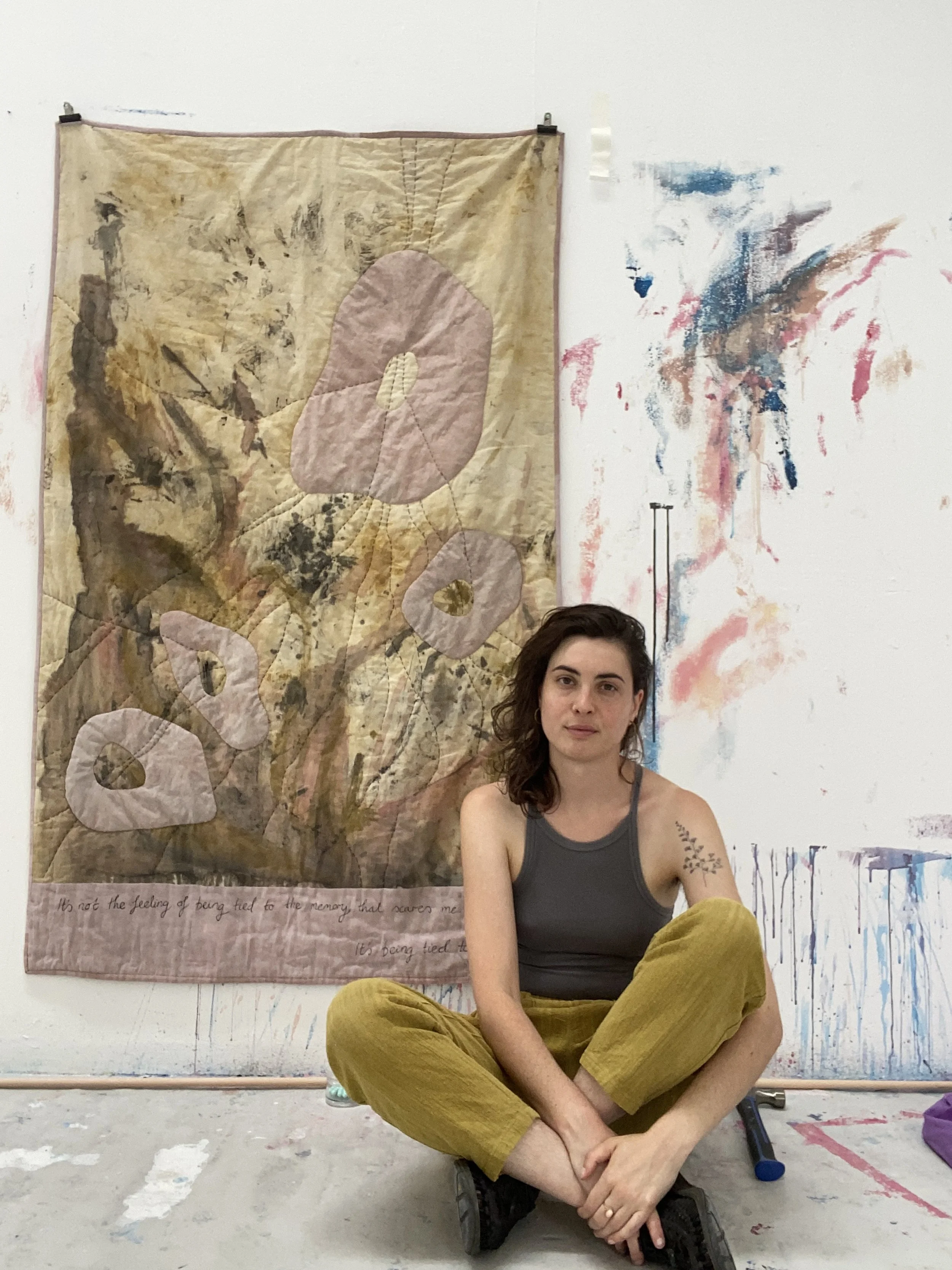 As a fine artist I specialise in quilt making and textile based media. My work centres around embodied experiences, filtered through iterative drawings, paintings and prints, culminating in hand dyed and stitched quilts.
